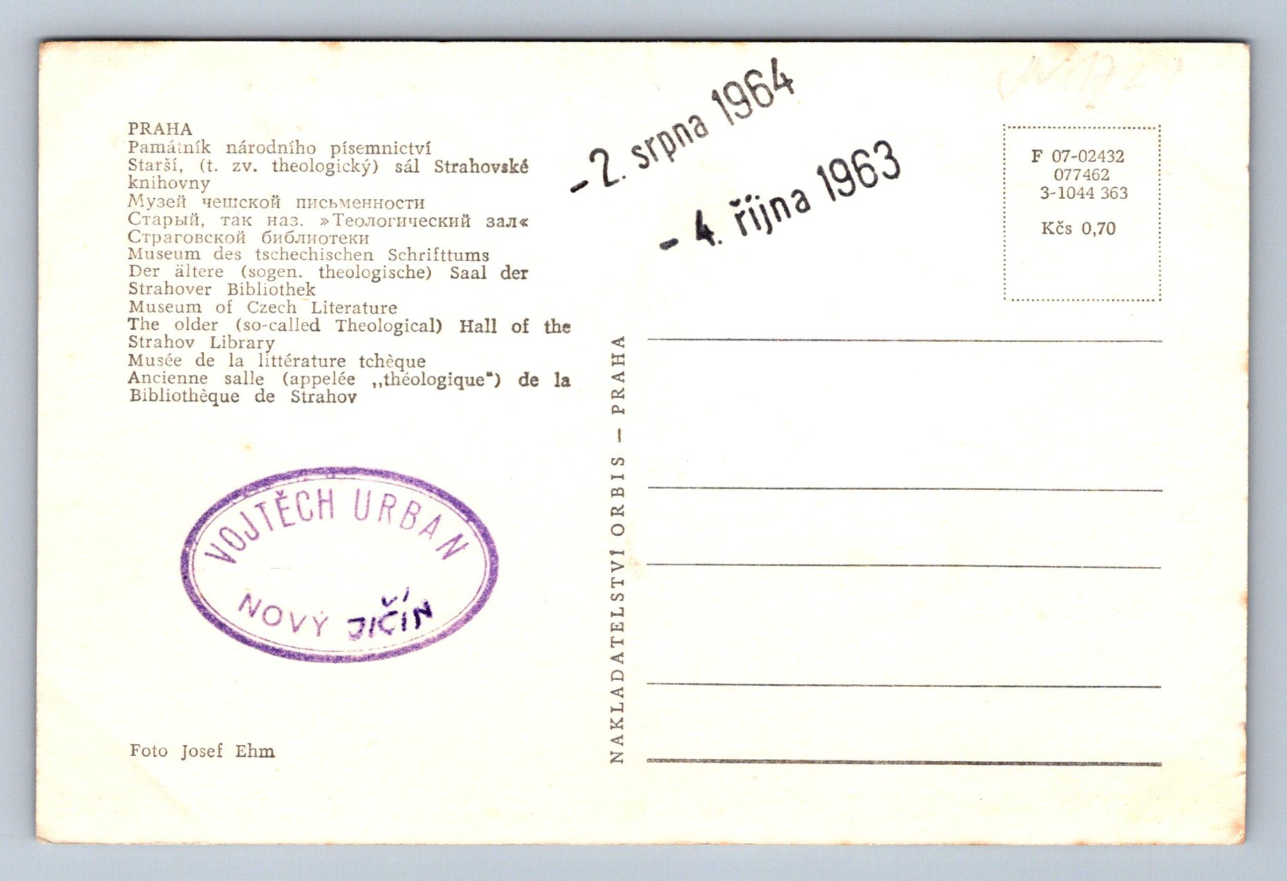 Pohlednice Praha pamatník narodního písemnictví Starší sál (JN1721)