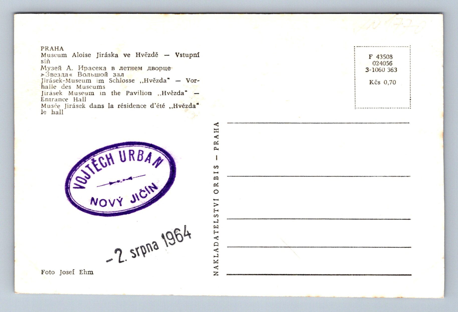 Pohlednice Praha Museum Aloise Jiráska ve Hvězdě Foto Josef Ehm (JN1770)