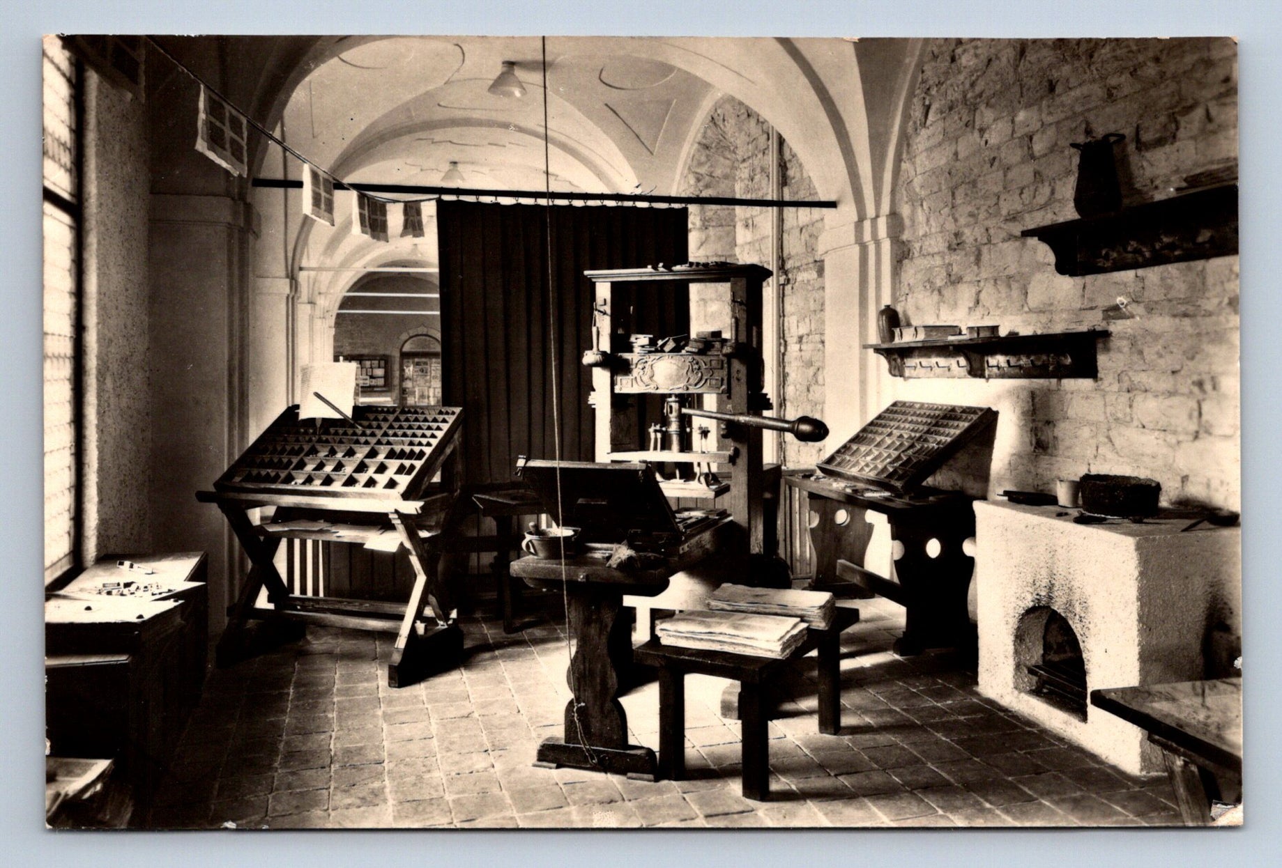 Pohlednice Praha Památník národního písemnictví Expozice knihtisku s tiskárnou ze 16. století (JN1822)