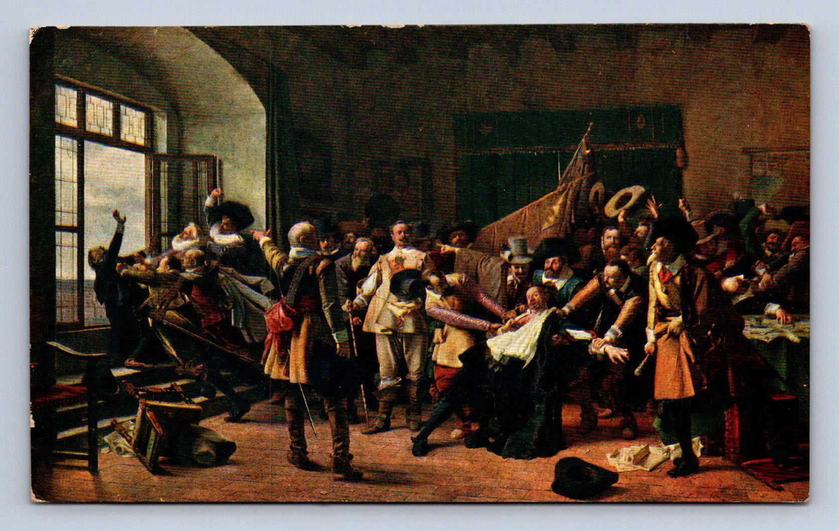 Pohlednice V. Brožík: Defenestrace. Fialové razítko Vojtěch Urban (JN1823)