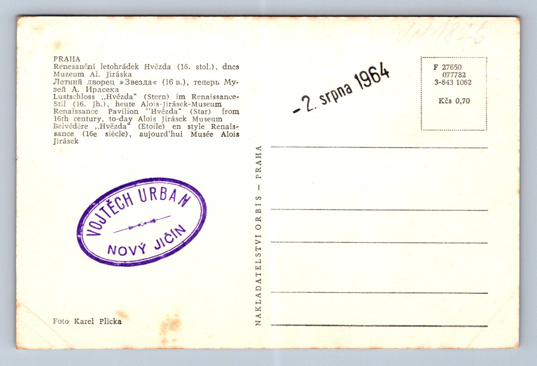 Pohlednice Praha renesační letohrádek Hvězda, dnes Museum Al. Jiráska
