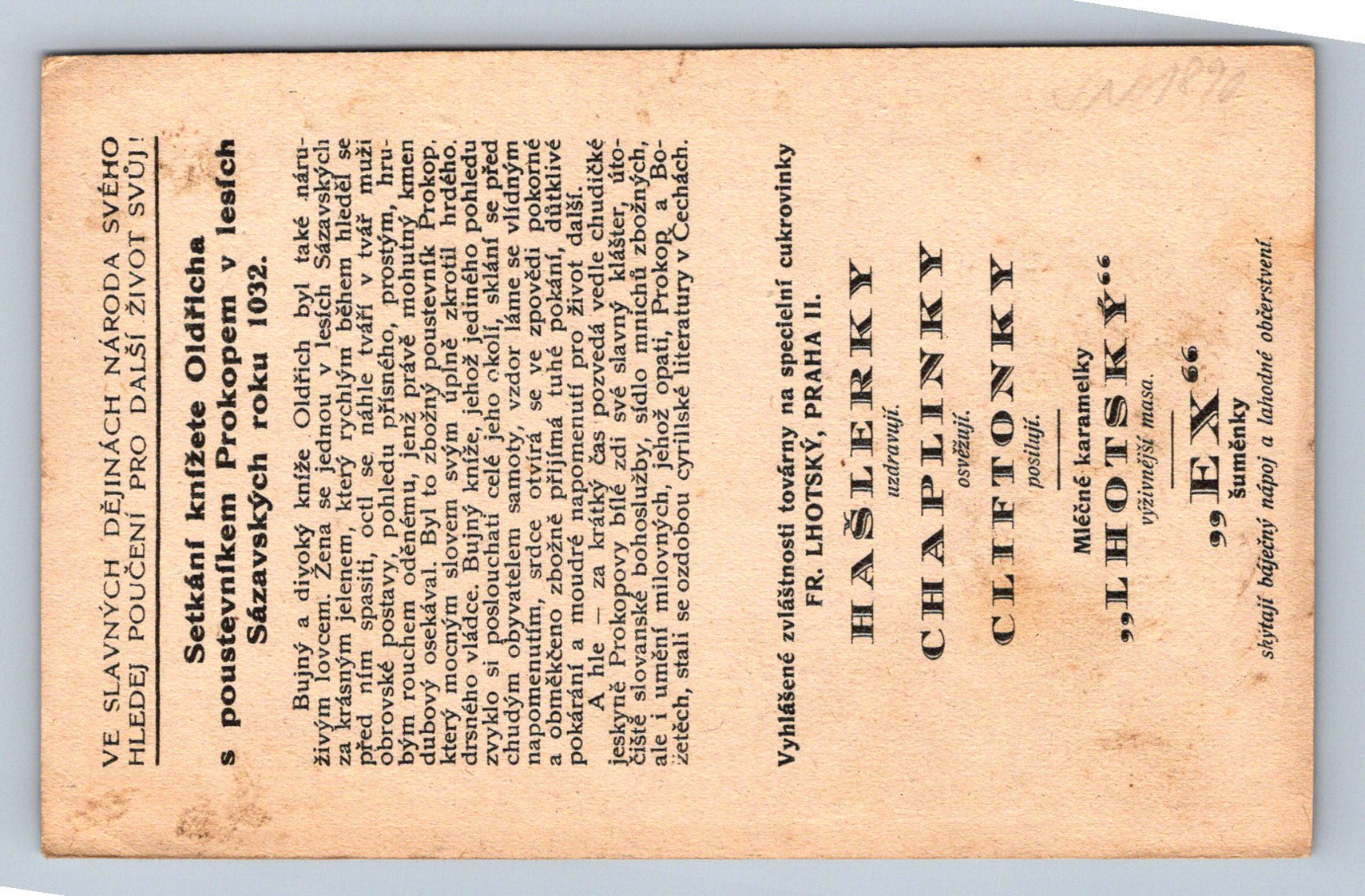 Pohlednice HAŠLERKY REKLAMA Setkání knížete Oldřicha s poustevníkem Prokopem (JN1890)