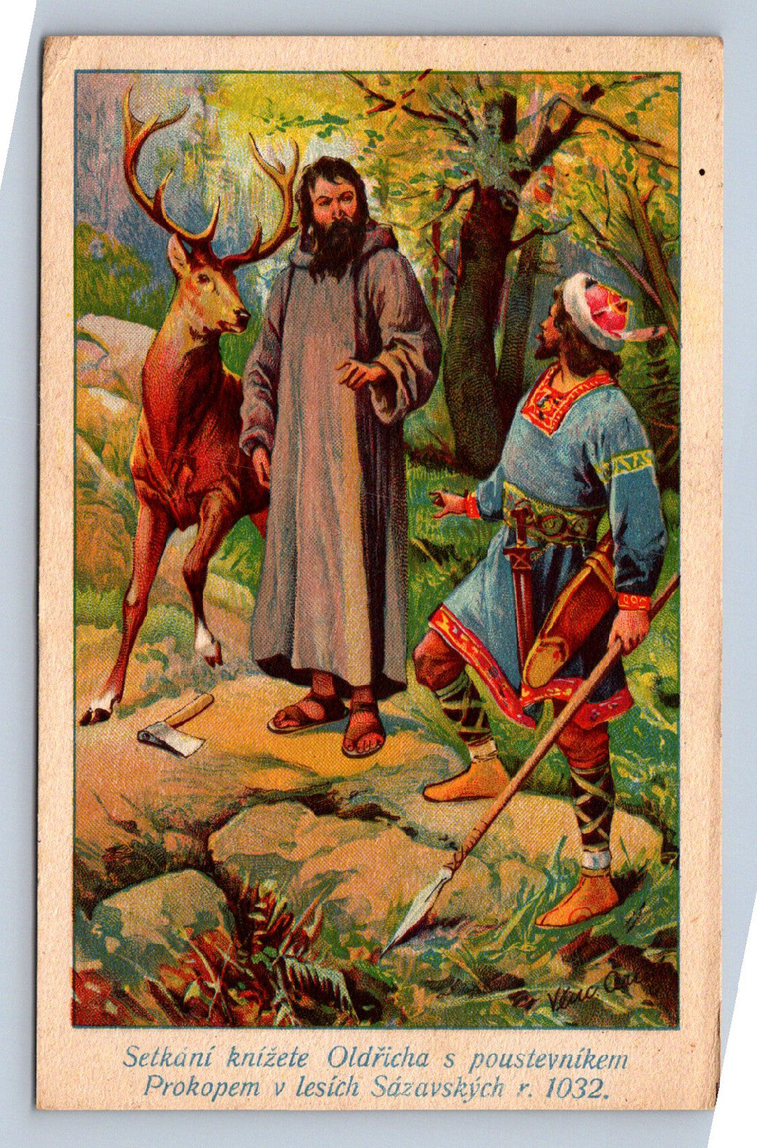 Pohlednice Reklama HAŠLERKY Setkání knížete Oldřicha s poustevníkem Prokopem (JN1897)