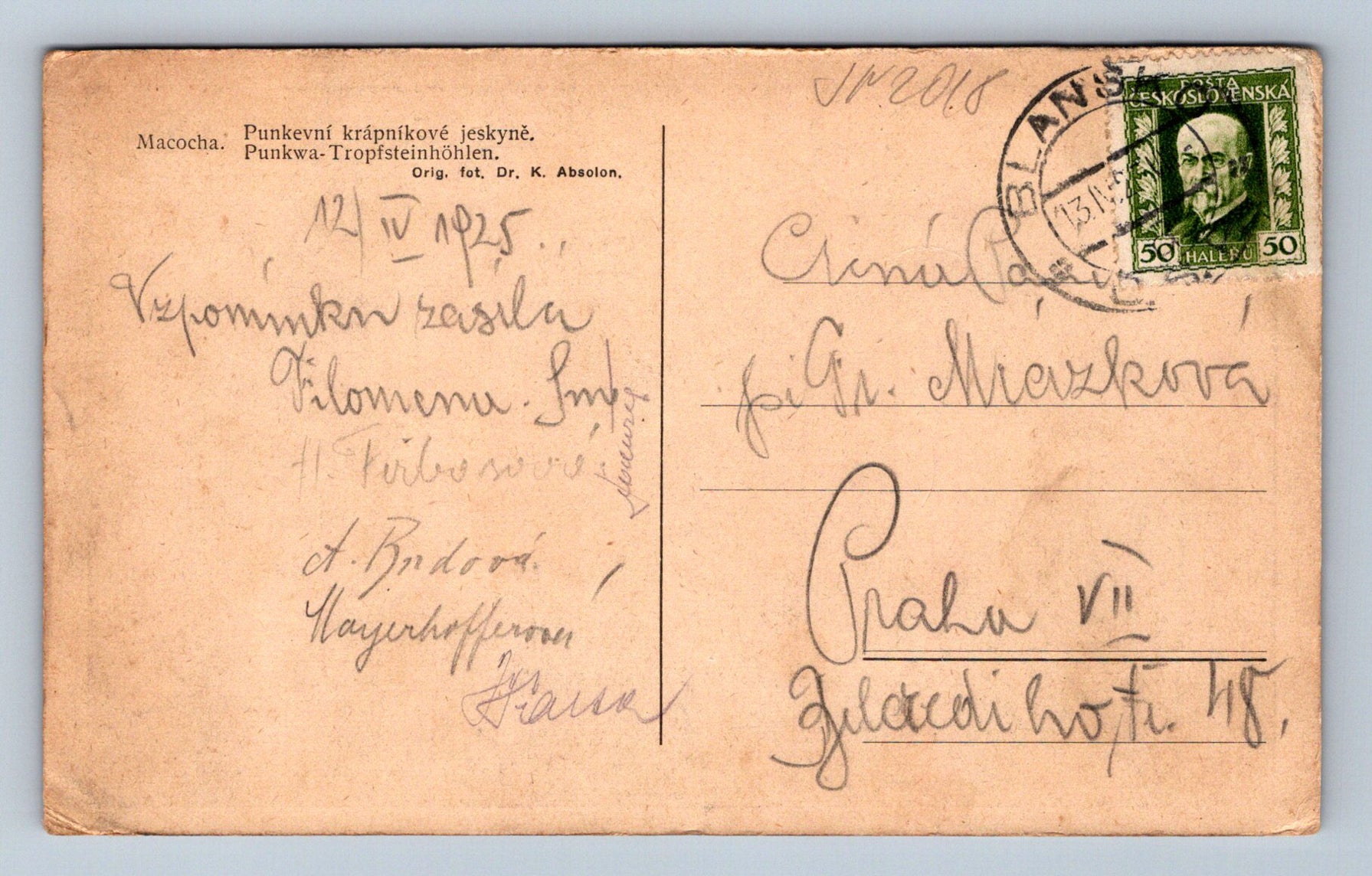 Pohlednice Machova Punkevní krápníkové jeskyně (JN2018)