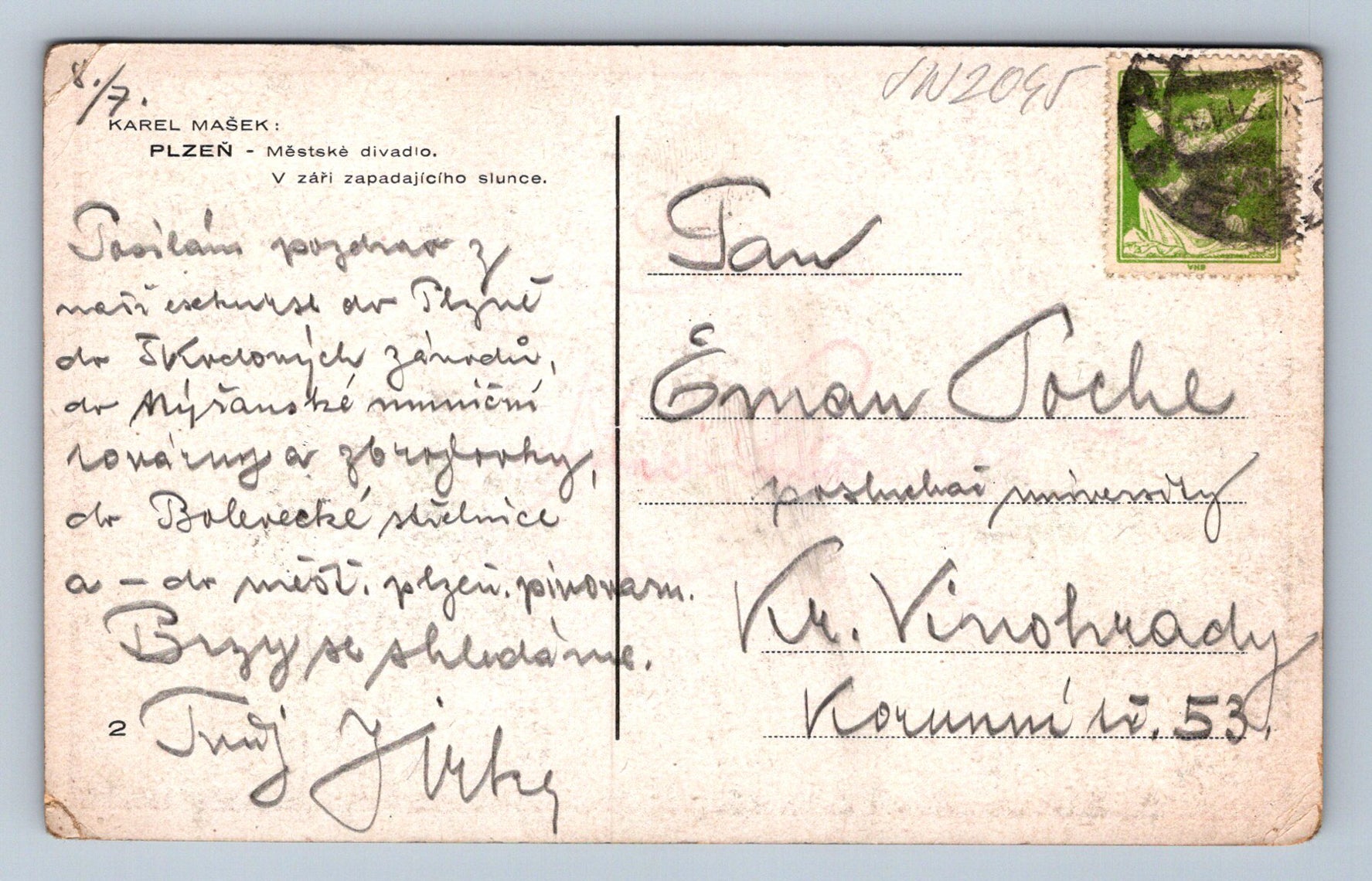 Pohlednice Karel Mašek: Plzeň Městské divadlo (JN2045)