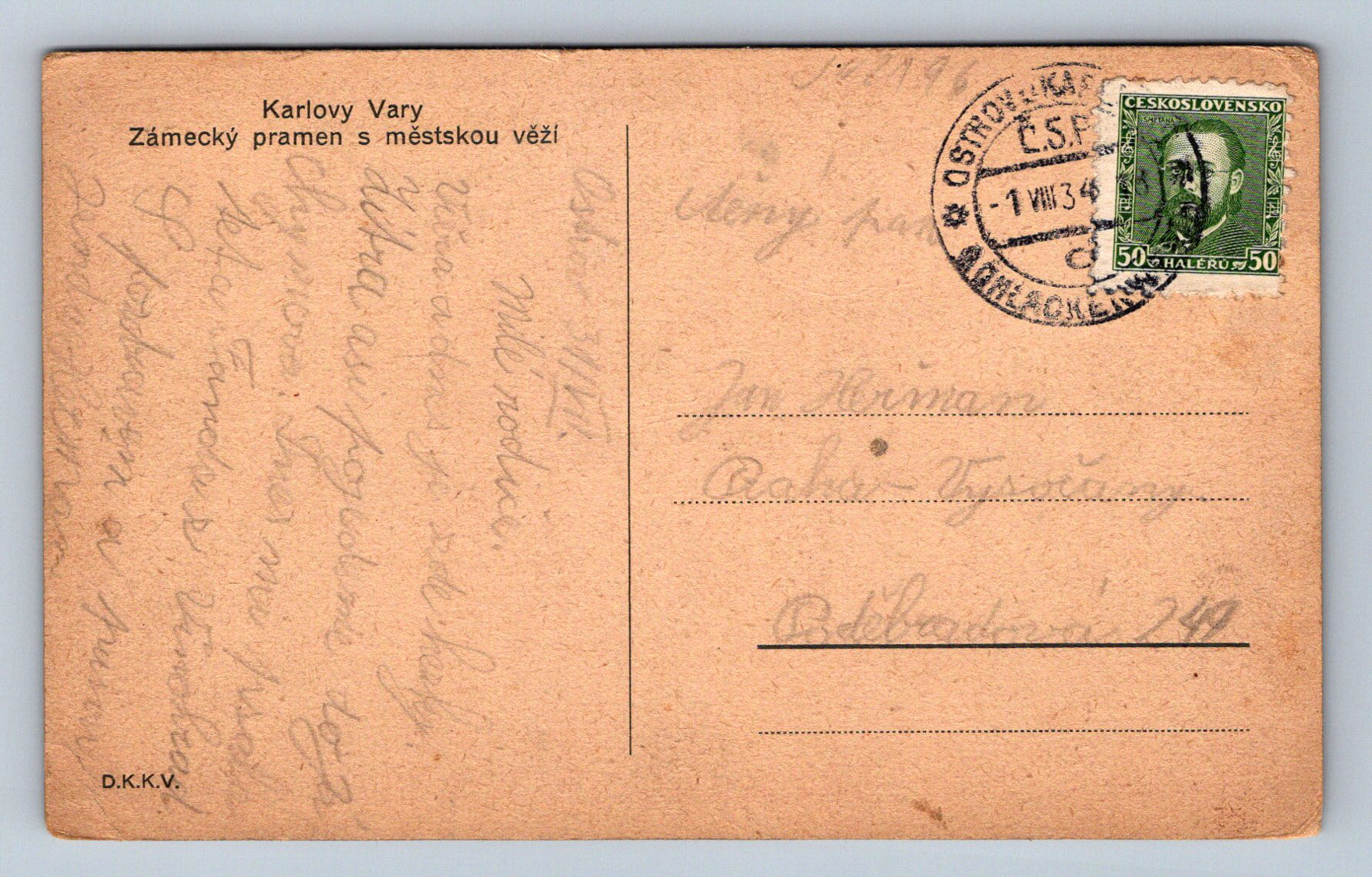 Pohlednice Karlovy Vary Zámecký pramen s městskou věží (JN2196)
