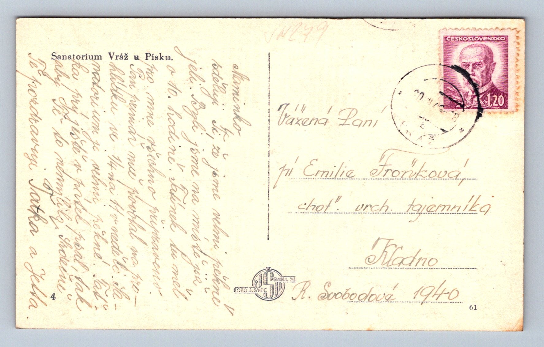 Pohlednice Sanatorium - Vráž u Písku (JN249)