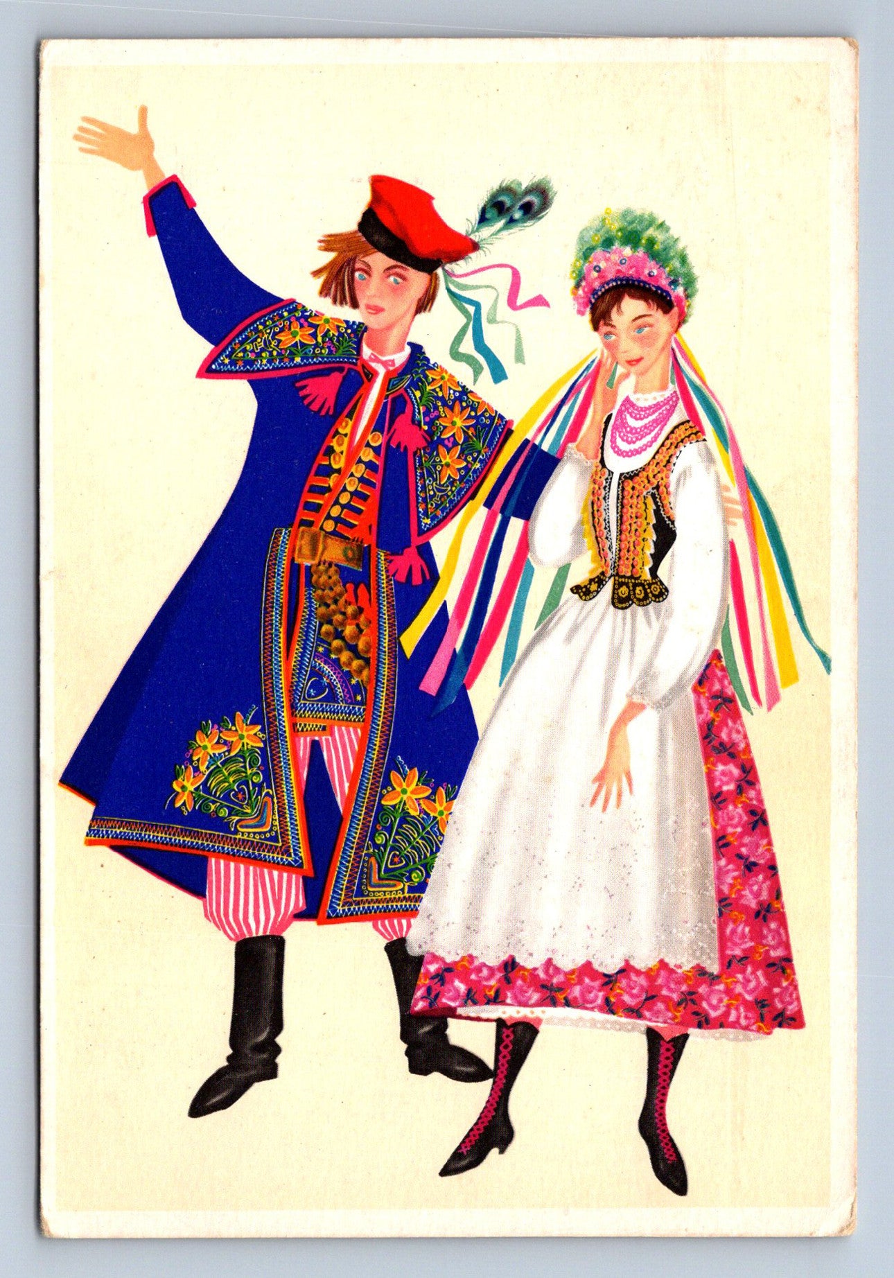 Pohlednice Krakow malovaný pár v kroji (JN2496)