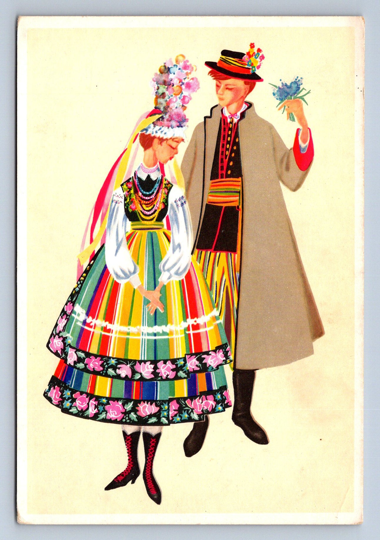 Pohlednice Lowicz malovaný pár v kroji Irena Czarnecka (JN2498)