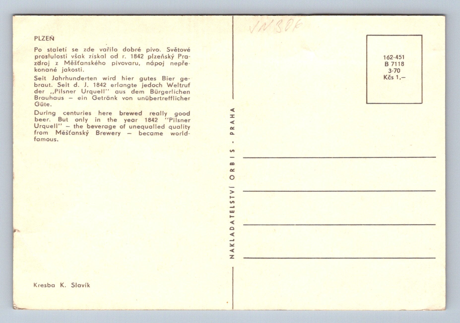Pohlednice Plzeň - kreslené pivo (JN306)