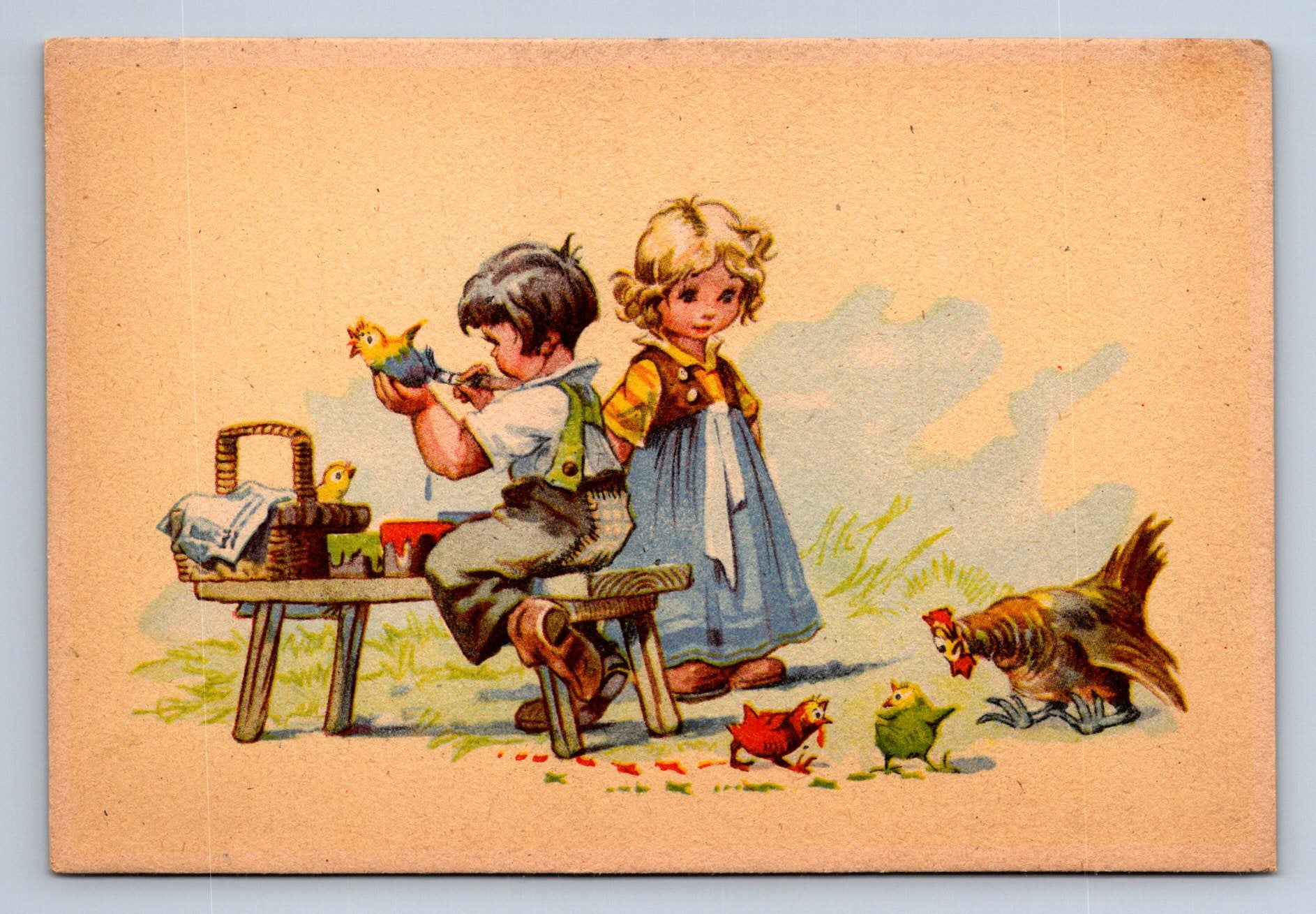 Pohlednice Děti a kuřátka KVĚCHOVÁ (JN902)