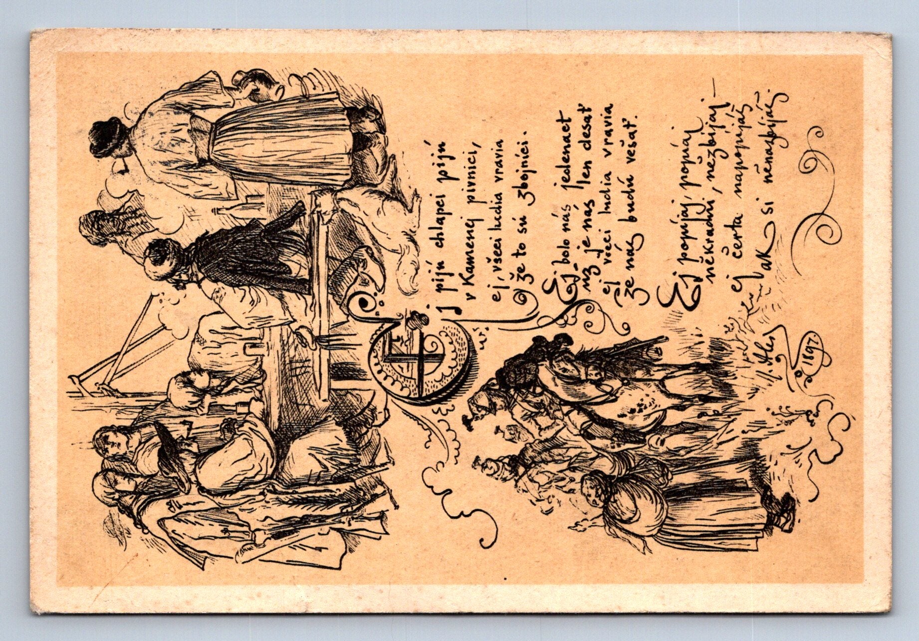 Pohlednice Pijú chlapi Kreslil M. Aleš (JN909)