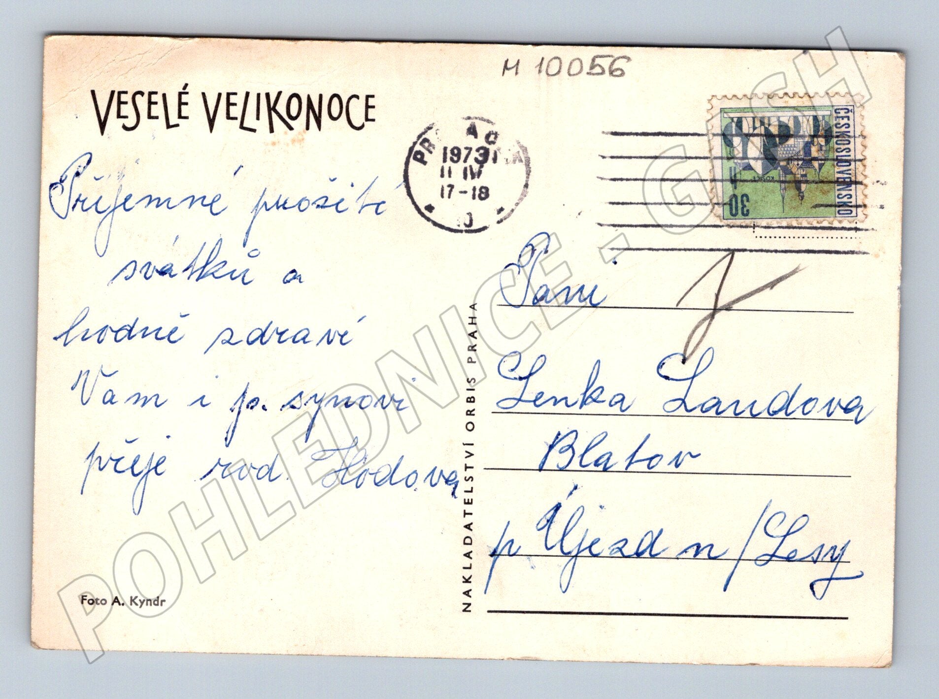 Velikonoční pohlednice ČSSR 1973 kraslice řehtačka (M10056)