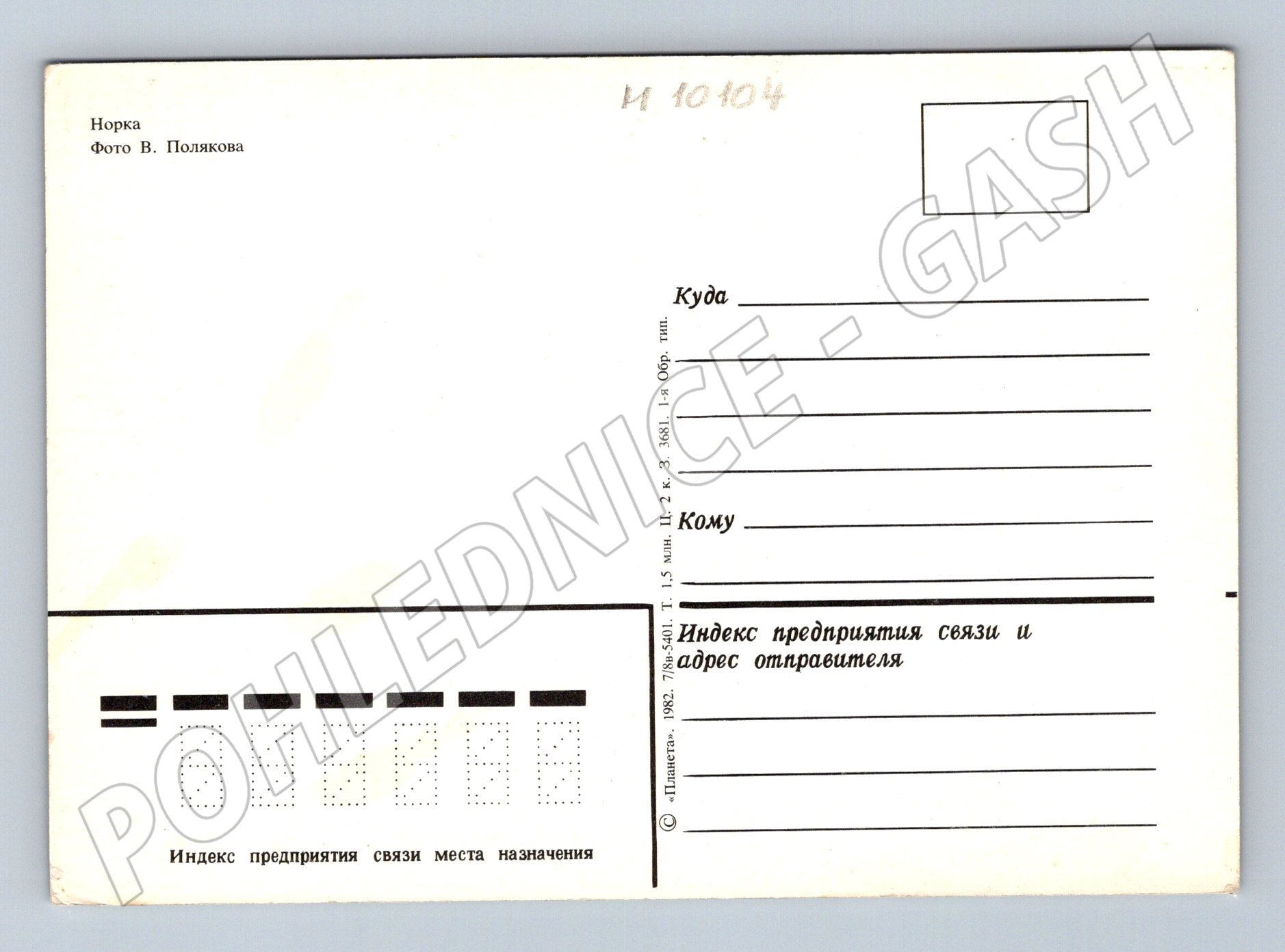 Pohlednice norka bílá – zvíře v přírodě, SSSR