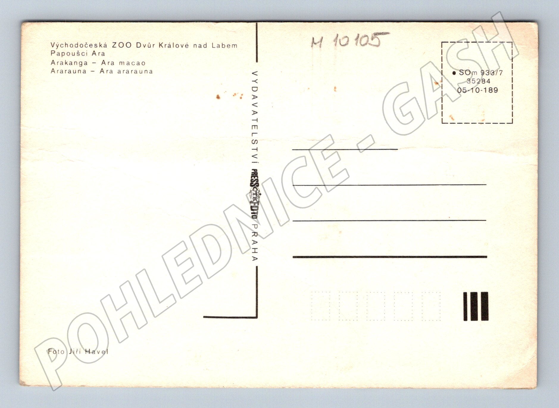 Nabízím originální pohlednici ze série vydané Východočeskou ZOO Dvůr Králové nad Labem, zachycující dva papoušky Ara – Arakanga (Ara macao) a Ararauna (Ara ararauna). Pohlednice je ve vintage stylu, pravděpodobně z 80. let, na zadní straně s popisem a údaji o vydavatelství. Autorem fotografie je Jiří Havel. Rozměry klasického formátu, stav je odpovídající stáří – místy drobné opotřebení a ohyb v rozích (viz foto). Skvělý doplněk do sbírky pohlednic se zvířecí tématikou nebo jako dárek pro milovníky papoušků a exotických ptáků. Neprošlá poštou.