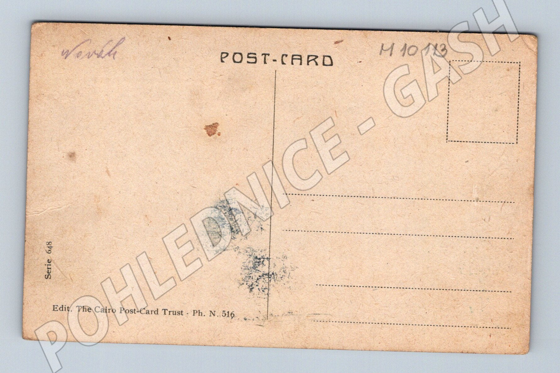 Nabízím originální starou pohlednici Port Said – Office of the Canal Suez Co. z Egypta. Na pohlednici je vyobrazený přístav s budovou správy Suezského průplavu, loděmi a čluny, které kotví na klidné hladině. Pohlednice je kolorovaná, zachycuje atmosféru rušného přístavu začátku 20. století. Na zadní straně je pouze potisk pro adresu a známku, lehké stopy stáří, žádný text adresáta. Editorem pohlednice je The Cairo Post-Card Trust, serie 648. Unikátní kousek pro sběratele pohlednic z Afriky a zájemce o historii dopravy či Suezského průplavu.