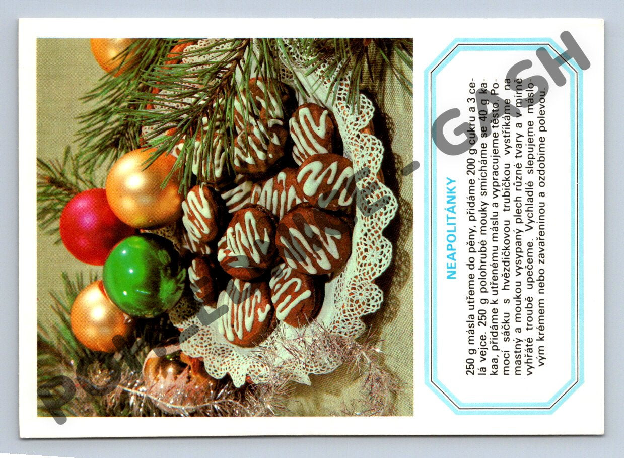 Vánoční pohlednice ČSSR s receptem na neapolitánky, Pressfoto Praha