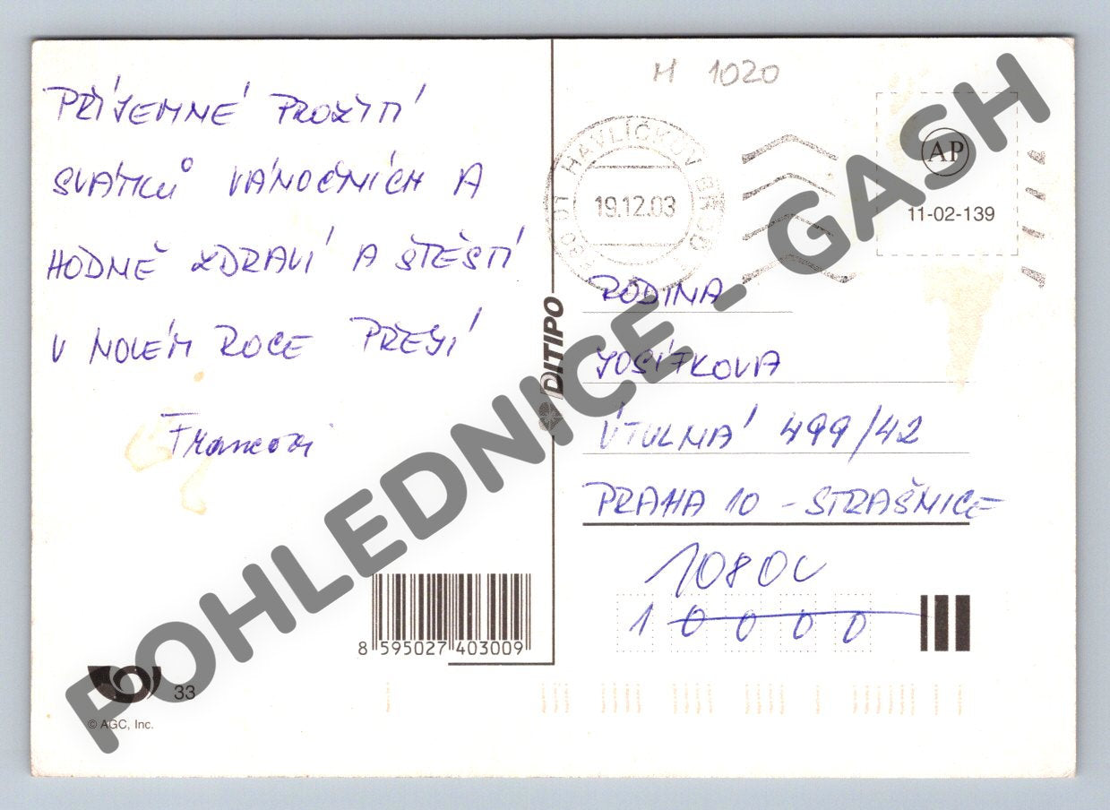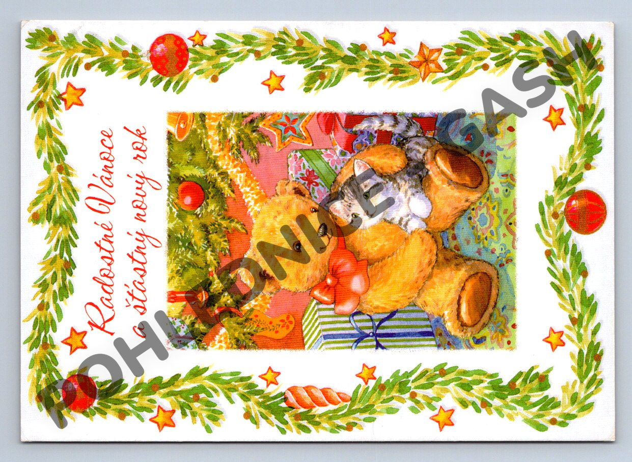 Vánoční pohlednice s kočkou a medvídkem, 2003