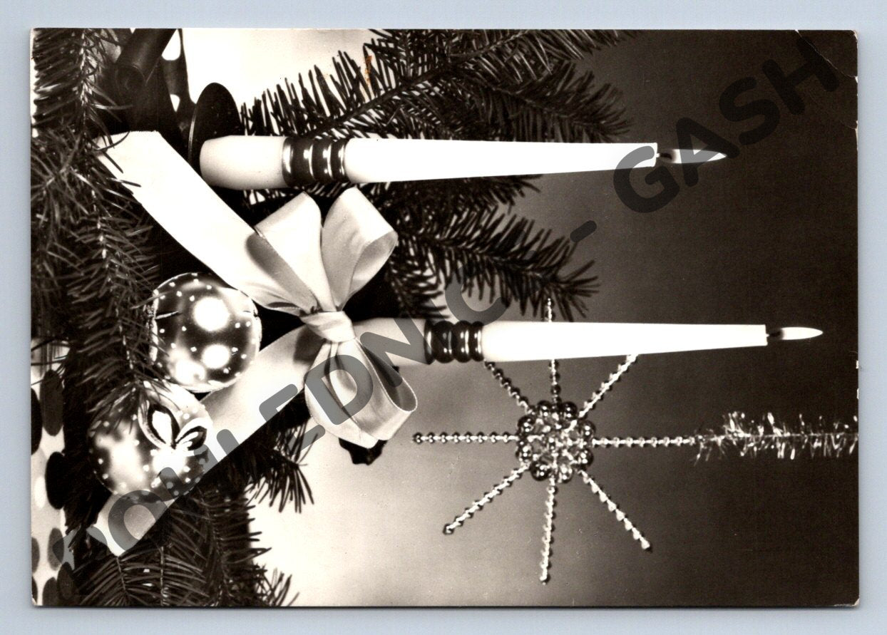 Vánoční pohlednice Československo 1972, svíčky a ozdoby