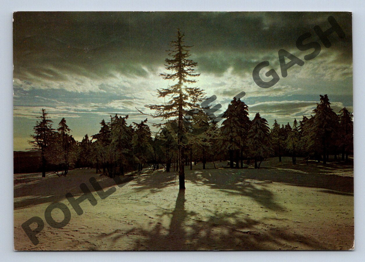 Originální pohlednice s fotografií zimní krajiny – zasněžený les a dramatická obloha. Pohlednice byla odeslána v roce 1972 z Krkonoš, jak je patrné z ručně psaného textu a razítka. Na rubu je novoroční přání a adresa s tehdejší známkou (Československo, hodnota 50 h). Fotografii pořídil A. Holub (SG Velký Šenov), vydavatel Panorama Praha. Pohlednice nese známky poštovního oběhu – otisk razítka, drobné opotřebení odpovídající stáří. Krásný sběratelský kousek s atmosférou českých hor ze 70. let.