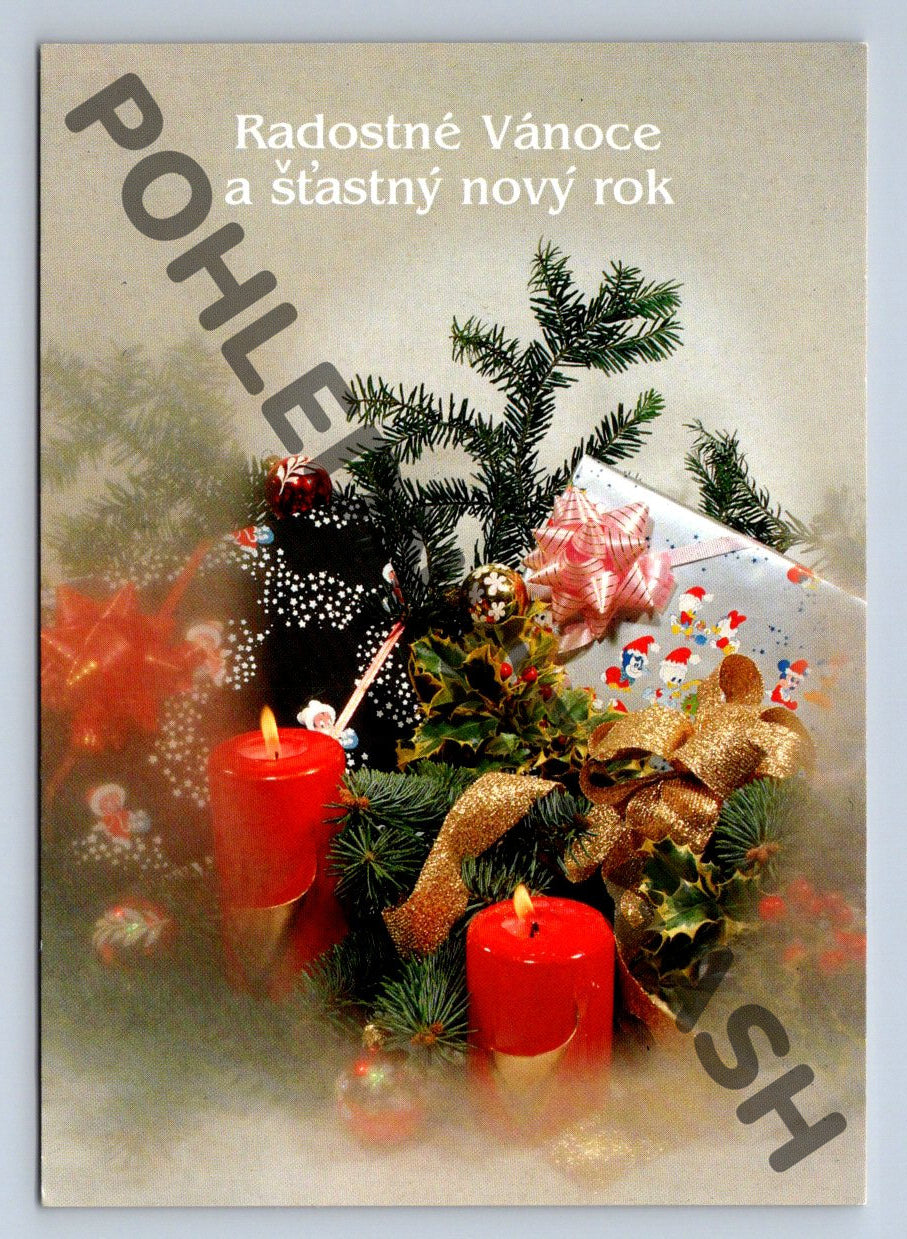 Nabízím pohlednici s vánoční tématikou s českým textem Radostné Vánoce a šťastný nový rok. Na přední straně je vyobrazen sváteční stůl s vánočními dekoracemi, větvičkami, svíčkami, stuhou a dárkem. Pohlednice je neprošlá, čistá, ve velmi dobrém stavu. Vydavatel DITIPO, na zadní straně vytištěné číslo 02-017 a čárový kód. Ideální pro sběratele, nebo jako přání k Vánocům.