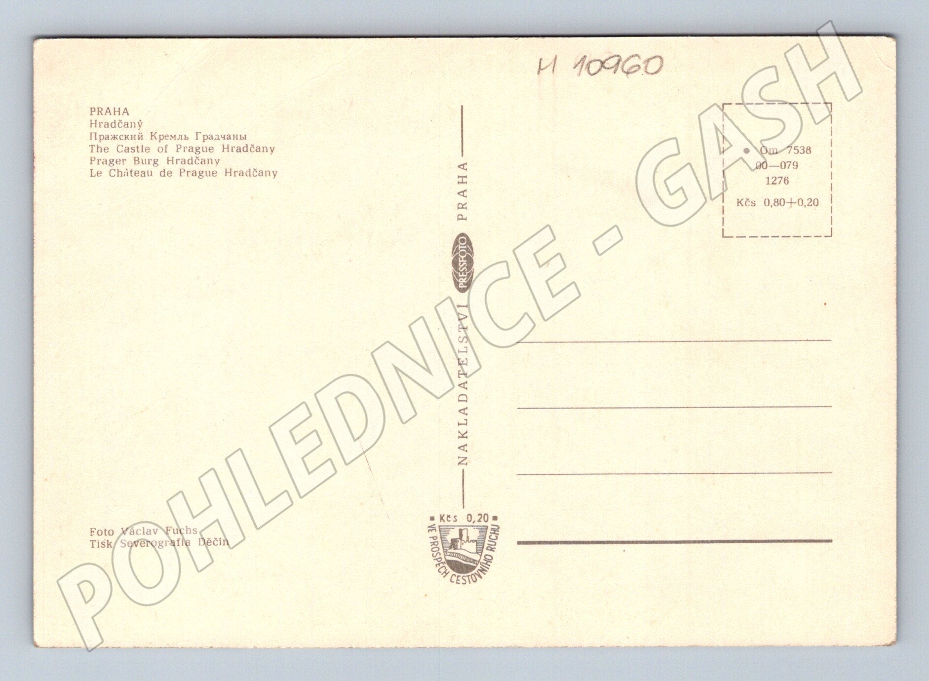 Nabízím originální pohlednici s motivem Pražského hradu a Hradčan. Pohlednice byla tištěna v Československu a zachycuje krásný pohled na Pražský hrad a Vltavu v barevném provedení. Texty na zadní straně jsou v několika jazycích, včetně češtiny, ruštiny, angličtiny, němčiny a francouzštiny. Autorem fotografie je Václav Fuchs, tisk Severografia Děčín. Pohlednice je ve velmi dobrém stavu, bez poškození, nebyla použita. Vhodné pro sběratele i jako dekorace, dokonalý kousek historie Prahy.