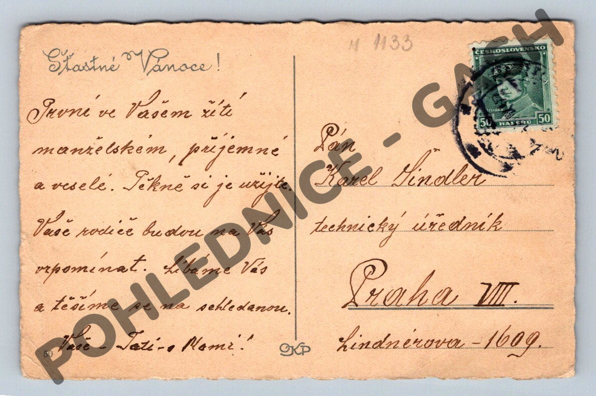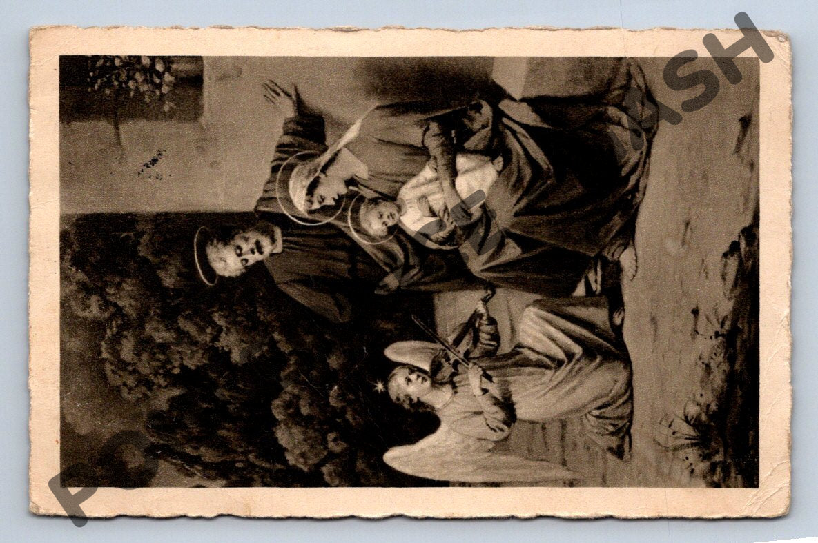 Originální vánoční pohlednice z období první poloviny 20. století. Na přední straně je černobílý motiv Narození Ježíše, okolo svaté rodiny jsou andělé. Zadní strana pohlednice je ručně popsána perem s českým vánočním přáním, adresováno panu Karlu Šindlerovi do Prahy. Pohlednice nese známku tehdejší Československé republiky v hodnotě 50 haléřů a je orazítkovaná. Papír nese známky stáří – mírně zaoblené rohy, drobné opotřebení dle stáří. Sběratelský kousek vhodný pro milovníky starých vánočních pohlednic a historie.