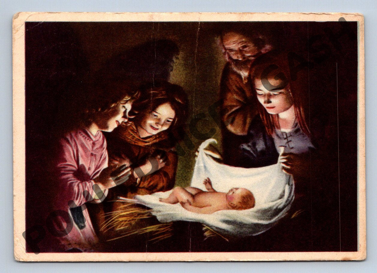 Starobylá vánoční pohlednice - Narození Ježíše, ČSR, do 1950