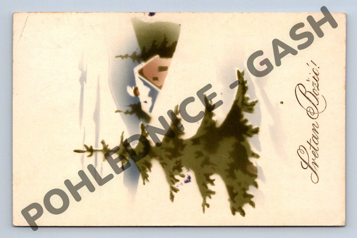 Originální stará vánoční pohlednice zaslaná v roce 1919 ze Sarajeva do Prahy. Na přední straně pohlednice je zimní motiv s chalupou a stromem, doplněný nápisem Sretan Božić! (Veselé Vánoce v chorvatštině/srbštině). Pohlednice nese známky stáří, byla skutečně zaslána, na zadní straně je ručně psaný text, adresa a dobová poštovní známka SHS (Království Srbů, Chorvatů a Slovinců). Výjimečný kousek pro sběratele historických pohlednic, zejména z oblasti bývalé Jugoslávie. Pohlednice je ve sběratelském stavu, vhodná pro milovníky historii, poštovních artefaktů a etnografických zajímavostí.