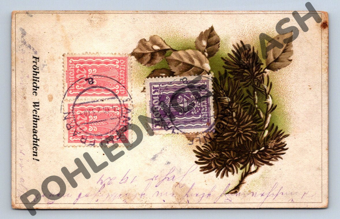 Historická vánoční pohlednice Rakousko 1923 se známkami