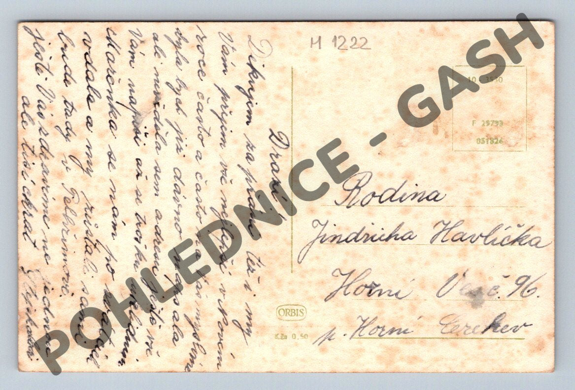 Originální stará pohlednice menšího formátu zobrazující zimní krajinu s nápisem Radostné vánoce a šťastný Nový rok. Pohlednice byla použita, na zadní straně je rukou psaný text a adresa rodiny Jindřicha Havlíčka v Horním Vracově. Vydavatelem je ORBIS a cena byla 0,50 Kč, takže se jedná o pohlednici z období první poloviny 20. století, pravděpodobně z období první republiky nebo těsně po ní. Pohlednice je ve stavu odpovídajícím stáří, vhodná pro sběratele starých pohlednic nebo milovníky české historie. Možné stopy stáří, flíčky, patina i známky poštovního provozu.