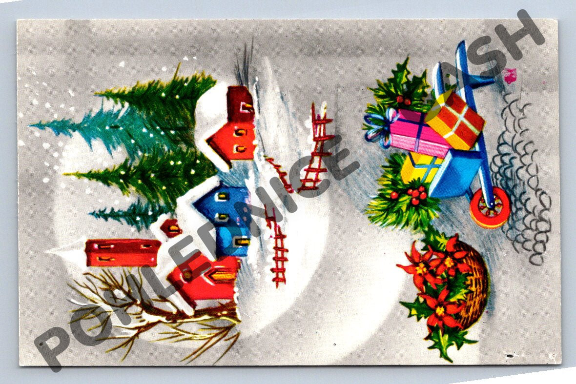 Vánoční pohlednice s leteckou tématikou z 80. let 20. století. Na barevné ilustrované přední straně je vyobrazen zasněžený zimní motiv s domky a letadlem, které nese dárky. Pohlednice je popsána a odeslaná v roce 1988, s originálním rukopisným textem a vánočním přáním. Čitelně zachovalá, sběratelský kousek pro milovníky historických pohlednic či tématu letectví.