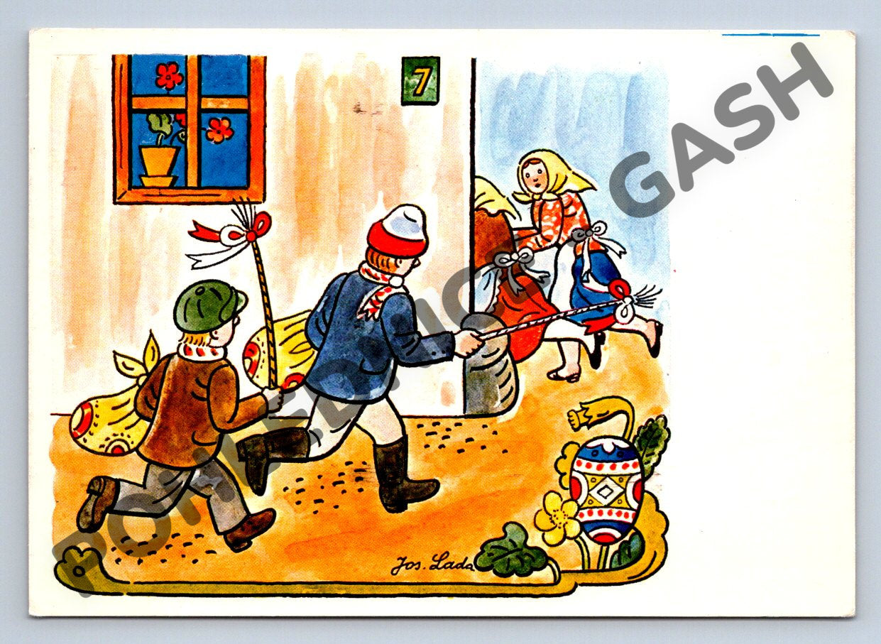 Pohlednice Josef Lada Velikonoce pomlázka ČSR (M1293)
