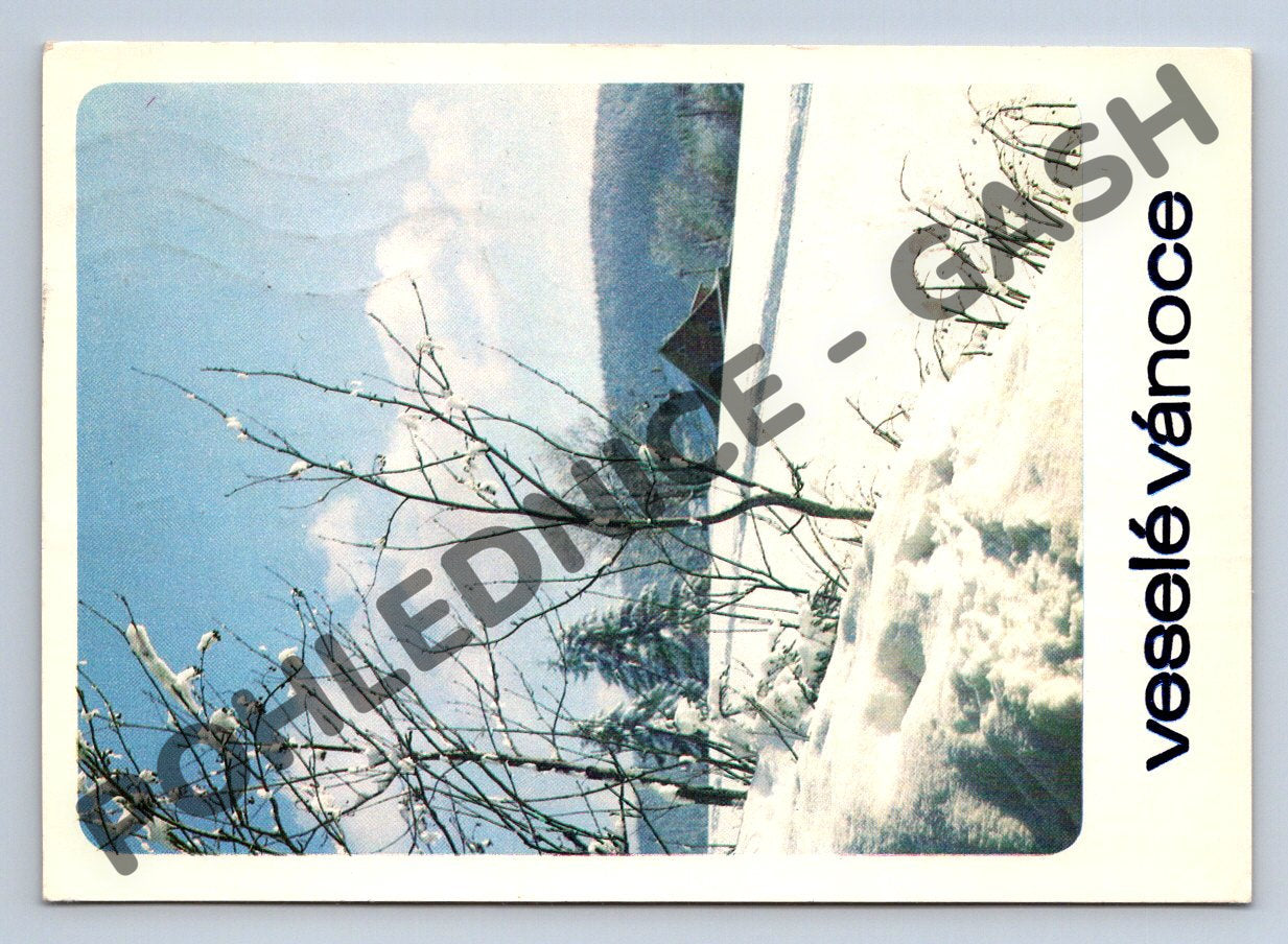 Vánoční pohlednice Československo - Veselé Vánoce, zasněžená krajina