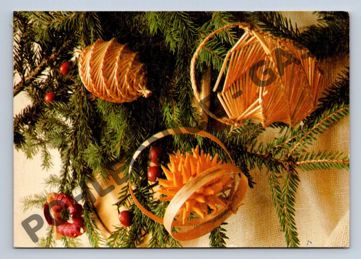 Vánoční pohlednice z ČSSR s motivem tradičních slaměných ozdob na smrkových větvičkách. Na zadní straně ručně psané přání Vše nejlepší, především zdraví a štěstí v Novém roce přeje Marie Hamová. Odesláno v roce 1981 z Kralup nad Vltavou, adresované do Prahy. Známka s motivem VŘSR (Velká říjnová socialistická revoluce). Jedná se o dobový tisk, foto Věra Gironiová, tisk Severografia Děčín. Pohlednice je ve velmi dobrém stavu, vhodná pro sběratele vánočních motivů či pohlednic s historickou hodnotou.