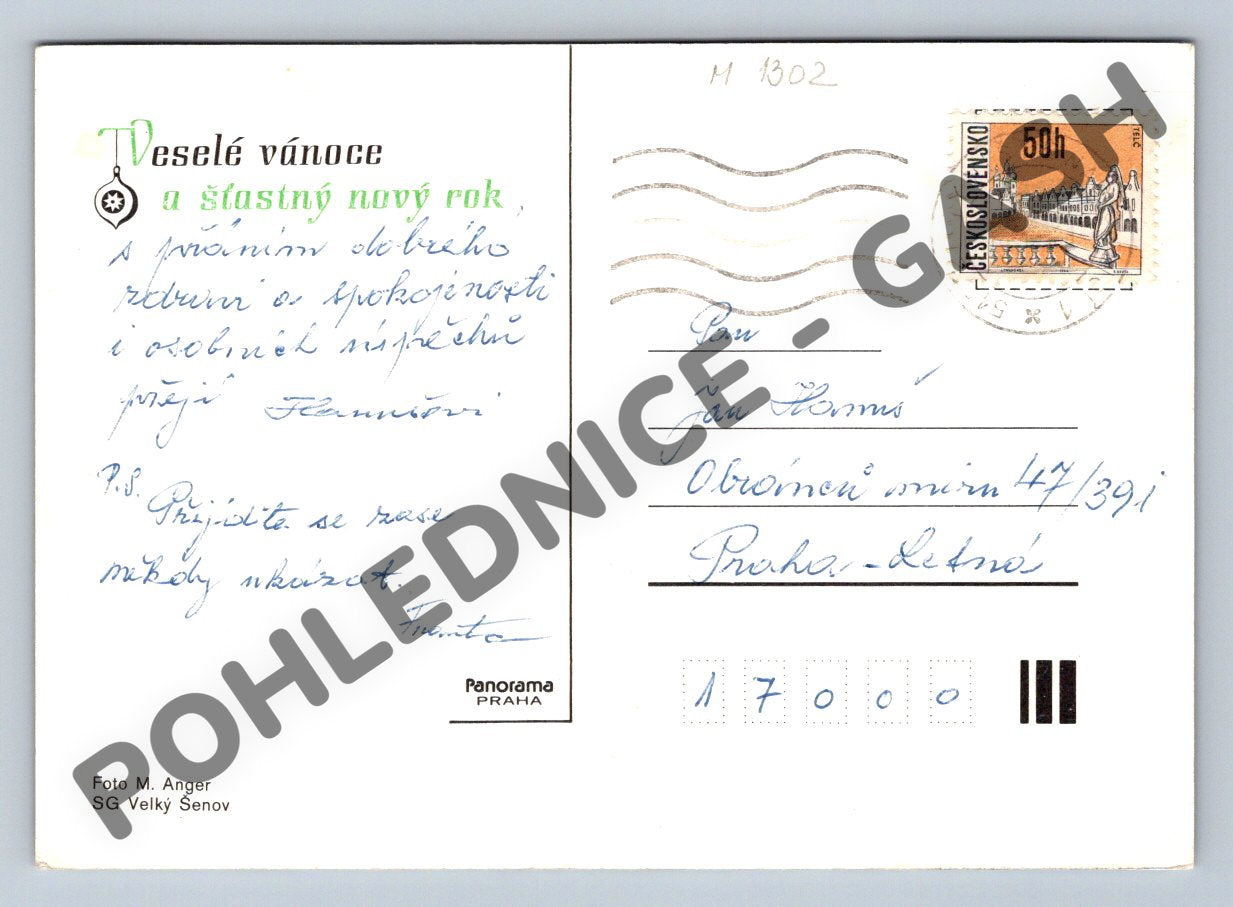 Originální pohlednice z Československa s motivem silně zasněžené krajiny a stromů, které jsou pokryté námrazou, fotografoval M. Anger. Na zadní straně je ručně psané vánoční a novoroční přání i poštovní známka z období Československa s razítkem. Vydavatel: Panorama Praha, SG Velký Šenov. Pohlednice je v zachovalém stavu, vhodná pro sběratele historických pohlednic, zejména s tematikou zimních motivů a českých reálií. Výborný doplněk do sbírky z období před rokem 1950.