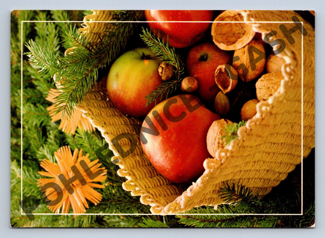 Vánoční pohlednice ČSSR s motivem ovoce a ořechů, prošlá poštou