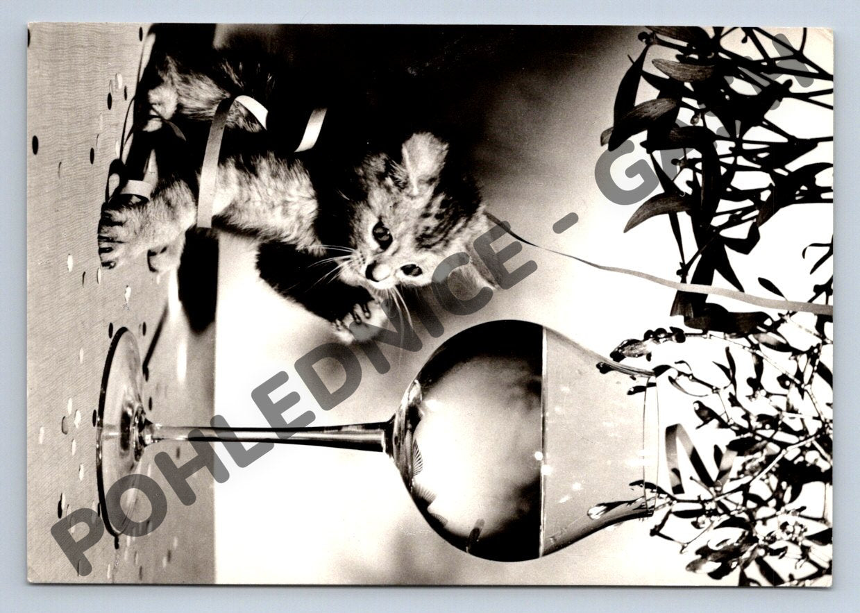 Nabízím originální pohlednici s motivem koťátka u sklenice šampaňského na slavnostně vyzdobeném stole. Jedná se o novoroční pohled, na zadní straně je věnování: Mnoho úspěchů a štěstí v Novém roce . Fotografie Norbert Bezděk, vydavatelství Orbis, Praha. Sběratelský kousek v dobrém stavu, dosud nepoužitá a čistá, vhodná jak pro sběratele, tak i jako milý dárek k novému roku. Formát klasické pohlednice, tisk v ČSSR. Cena 0,70 Kčs vytištěna na zadní straně. Originální retro styl a roztomilý motiv kočky potěší každého milovníka zvířat.
