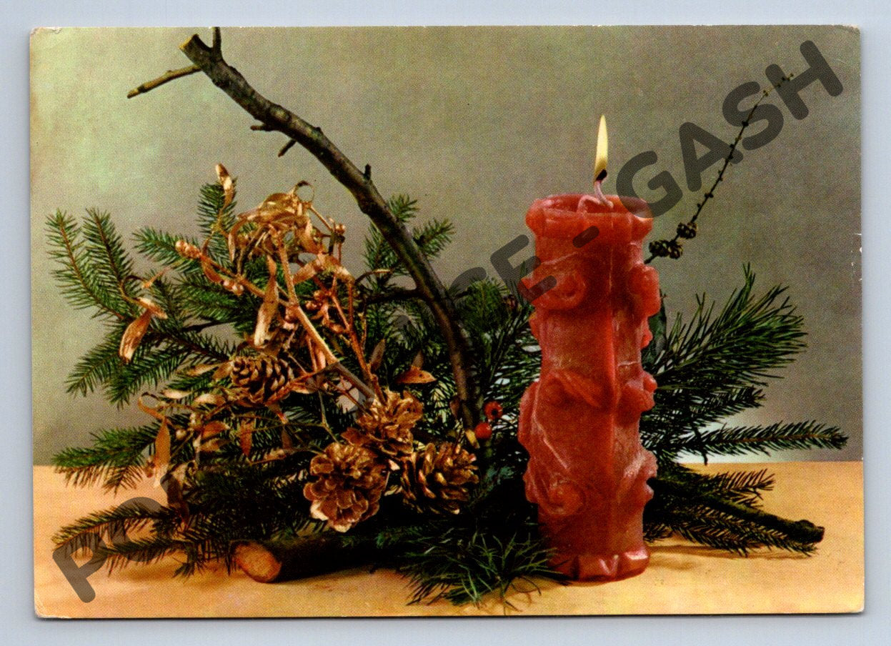 Pohlednice starý český motiv svíčka a větve (M1325)