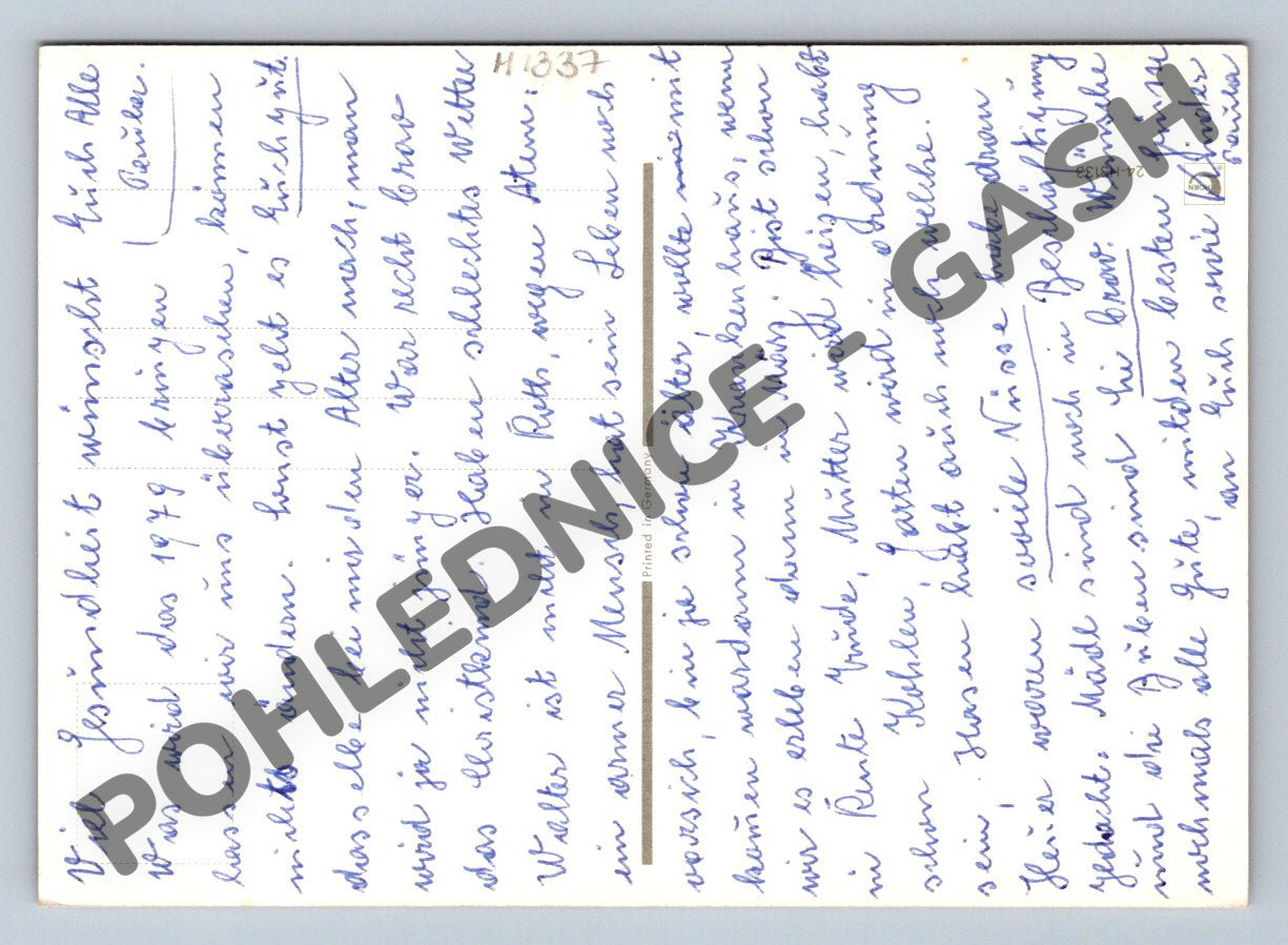 Zadní strana je popsána německým textem, pohlednice byla použita. Jedná se o větší formát novoroční pohlednice, pravděpodobně z období po roce 1950. Pohlednice je v dobrém stavu, barvy jasné, drobné známky běžného opotřebení.