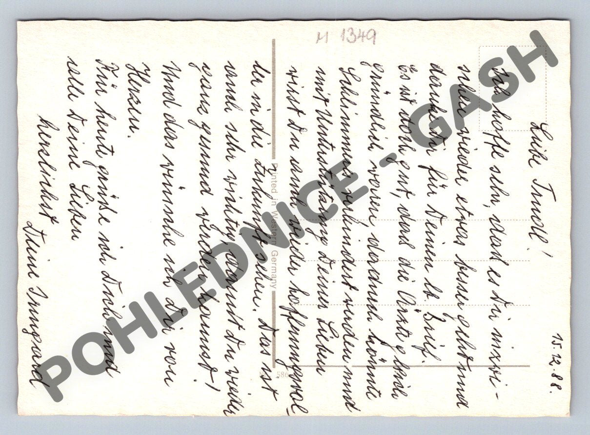 Vánoční pohlednice s krásným dekorem větviček, baňek a hvězd na sytě červeném podkladu. Pohlednice je ručně psaná, zaslaná a datovaná (15.12.68). Na zadní straně je text v němčině a náznaky poštovního použití. Výborný stav, bez patrného poškození, ideální pro sběratelské účely nebo jako originální vánoční dekorace. Vhodná také jako dárek pro milovníky retro pohlednic se zahraniční tématikou.