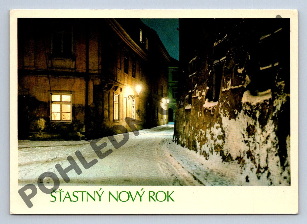 Pohlednice Novoroční Šťastný Nový rok noční ulička ČSSR (M1356)
