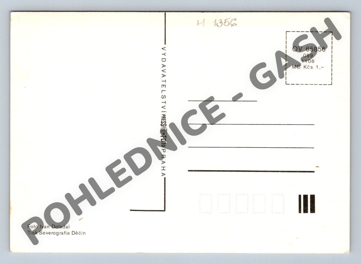 Originální novoroční pohlednice ze 70. nebo 80. let 20. století. Na přední straně je noční zimní ulice v historické části města, osvětlená lampami, a přání Šťastný Nový Rok . Foto Ivan Doležal, tisk Severografia Děčín. Zadní strana je neprošlá, se standardním rozvržením pro adresu a známku. Krásný kousek pro sběratele tematických i novoročních pohlednic z Československa.