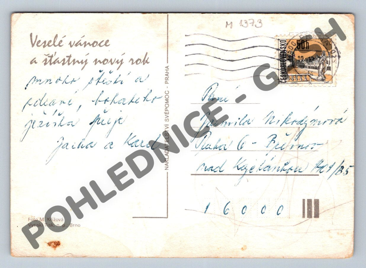 Originální československá vánoční pohlednice. Na přední straně jsou zobrazeny dvě červené svíčky, jehličnaté větvičky, vánoční ozdoba a ovoce na slavnostně prostřeném stole, vše ve stylu Vánoc. Pohlednice nese stopy používání, což je patrné na mírně ošoupaných rozích. Zadní strana je nadepsána přáním Veselé Vánoce a šťastný nový rok a je odeslaná s poštovní známkou. Skvělý sběratelský kus či nostalgický dárek.