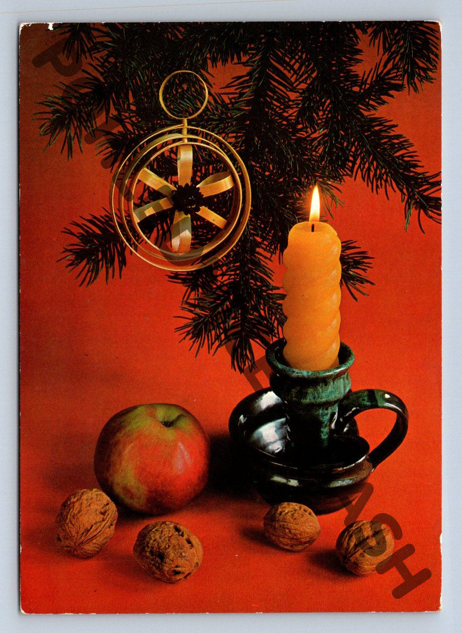Originální československá vánoční pohlednice malého formátu se svátečním motivem svíčky, vánoční ozdoby, vlašských ořechů a jablka na červeném pozadí. Vydavatelství Tatran Bratislava, fotografie J. Stochl, tisk Grafobal Skalica. Na zadní straně napsaný text s přáním Veselé Vánoce a poštovní známka s razítkem, adresovaná do Prahy. Stav odpovídá stáří, běžné známky poštovního provozu (patina, okraje viz foto). Krásný sběratelský kousek s atmosférou tehdejší doby.