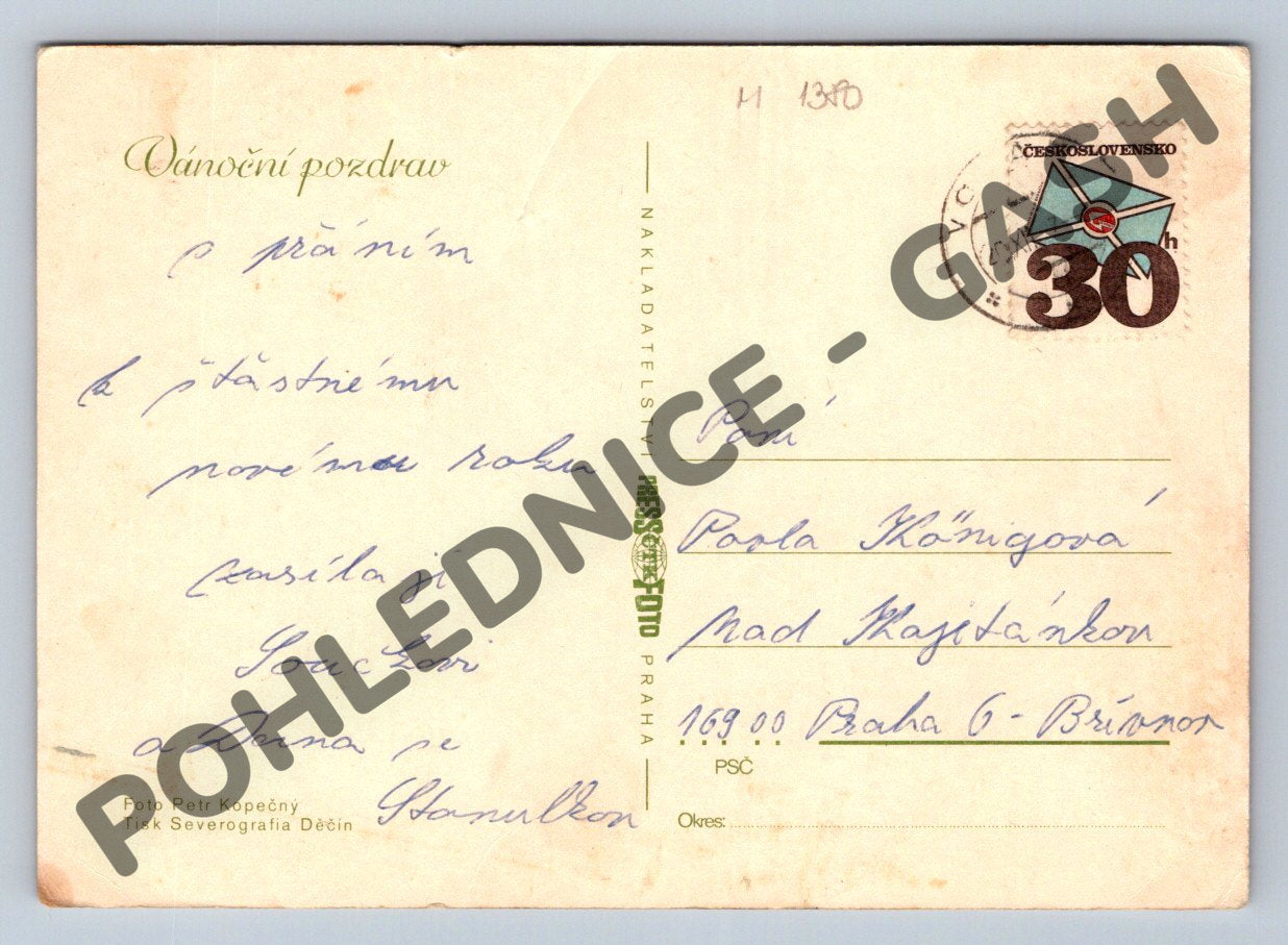 Vánoční pohlednice ČSSR – tradiční slavnostní mísa, ručně psaná, známka
