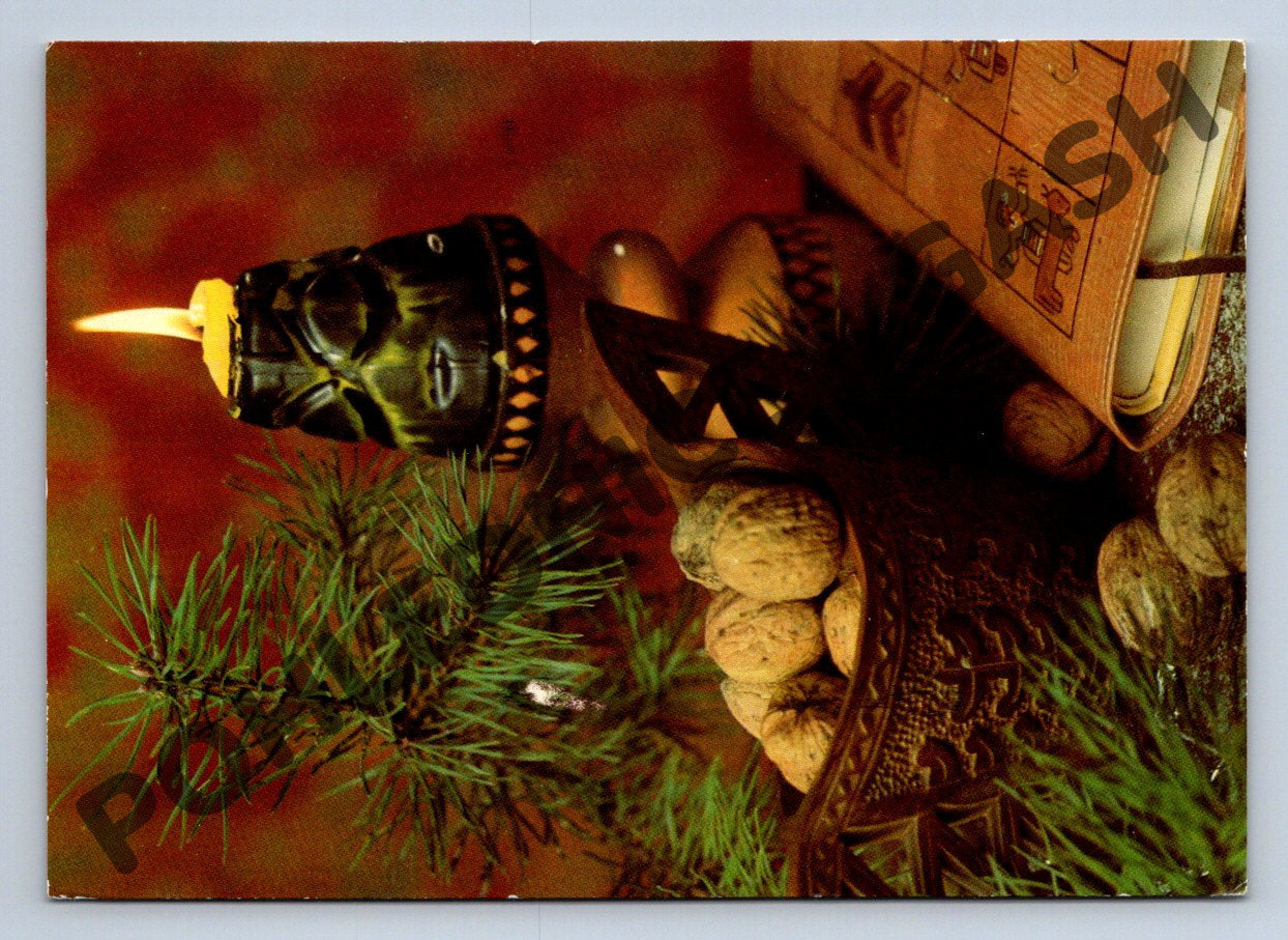 Pohlednice Vánoční ČSSR 1987 svíčka ořechy větvička (M1392)