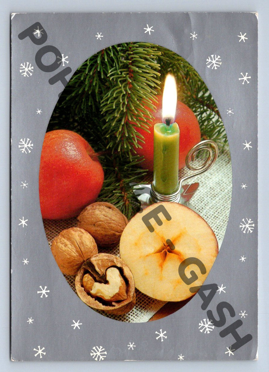 Pohlednice Vánoční Československo 1989 svíčka jablko ořechy (M1414)