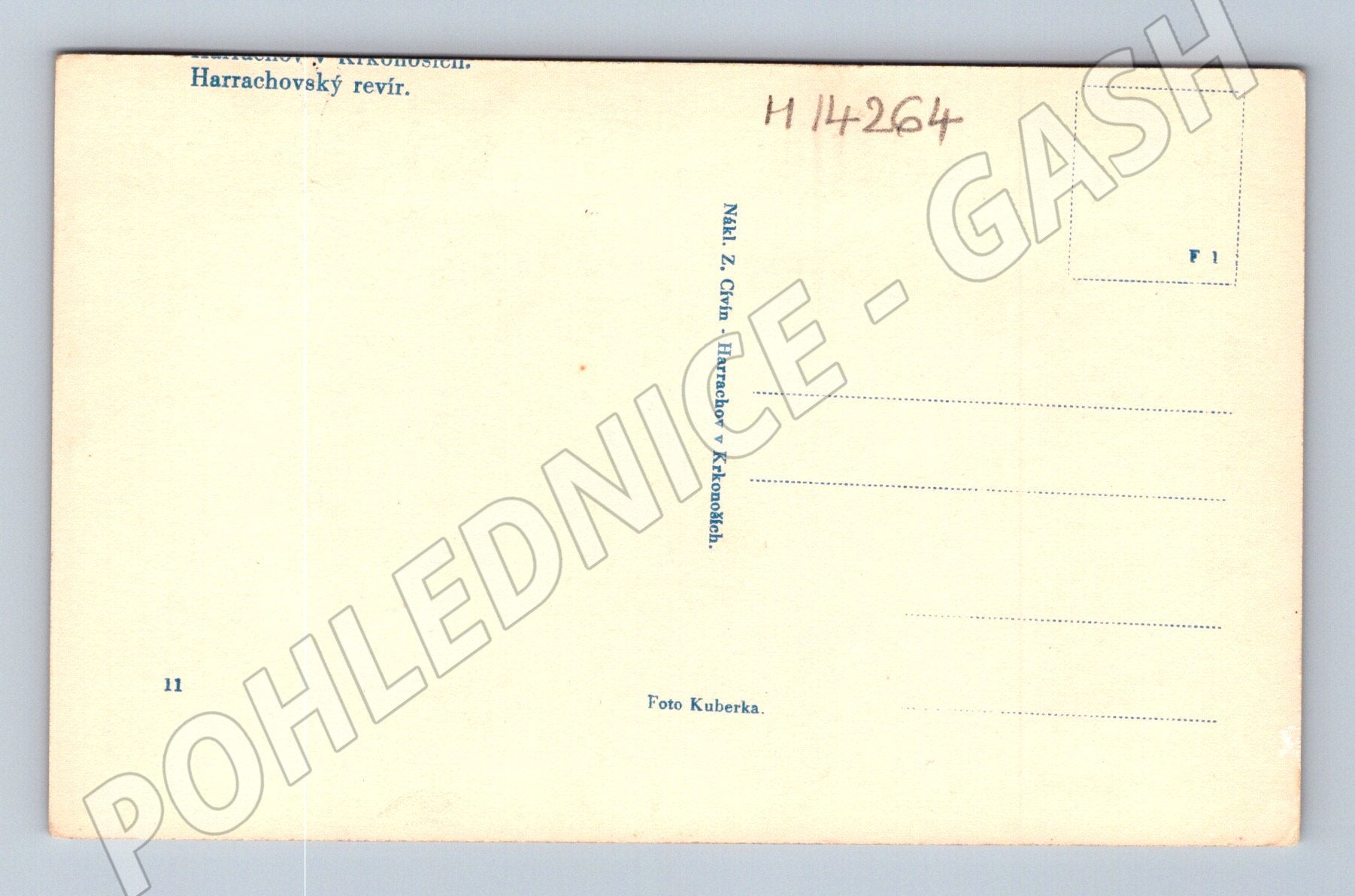 Nabízím starou černobílou pohlednici s motivem srnců ve sněhu v Harrachovském revíru v Krkonoších. Pohlednice je nepopsaná a ve velice dobrém stavu, bez větších známek poškození. Na zadní straně je uveden název lokality a vydavatel (Nákl. Z. Cyrin, Harrachov v Krkonoších, foto Kuberka). Pohlednice je krásnou ukázkou přírody a života lesní zvěře v zimním období, vhodná pro sběratele, milovníky přírody nebo jako dekorace.