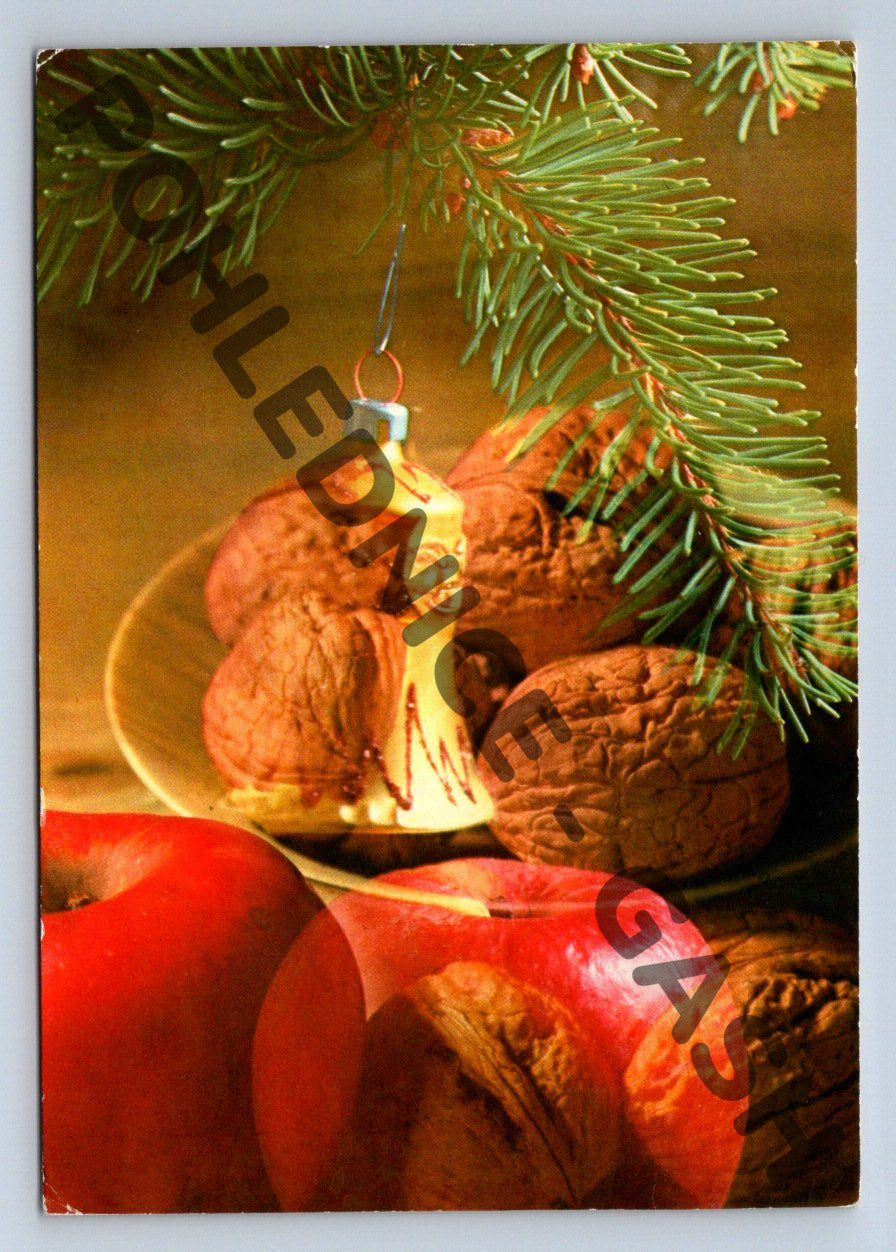 Pohlednice Vánoční Československo ořechy jablko jehličí (M1429)